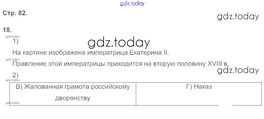 На страницах сайта gdz.today вы найдете учебный и вспомогательный материал, направленный на улучшения знаний школьной программы. ГДЗ - онлайн мир знаний Страницы (решение) 82 Рабочей тетради по Истории России для 8 класса Гевуркова Экзамен УМК 2018