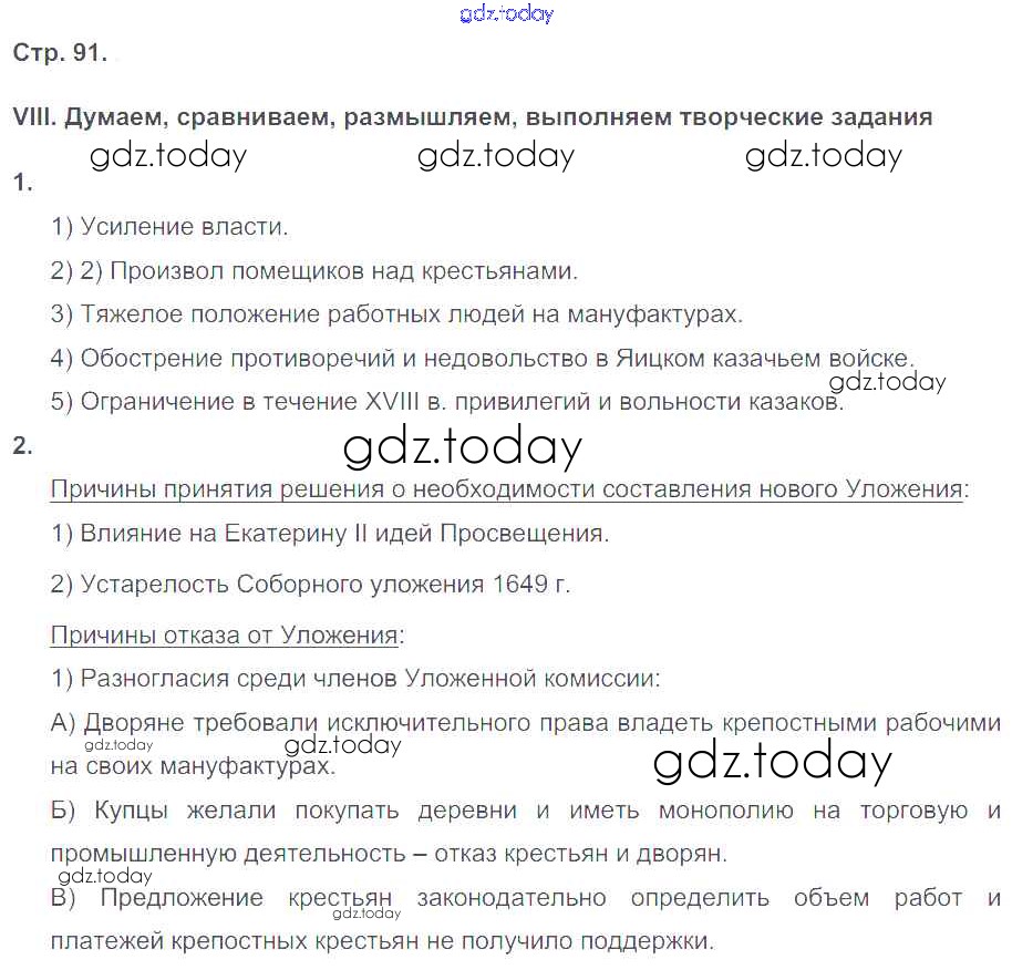 На страницах сайта gdz.today вы найдете учебный и вспомогательный материал, направленный на улучшения знаний школьной программы. ГДЗ - онлайн мир знаний Страницы (решение) 91 Рабочей тетради по Истории России для 8 класса Гевуркова Экзамен УМК 2018