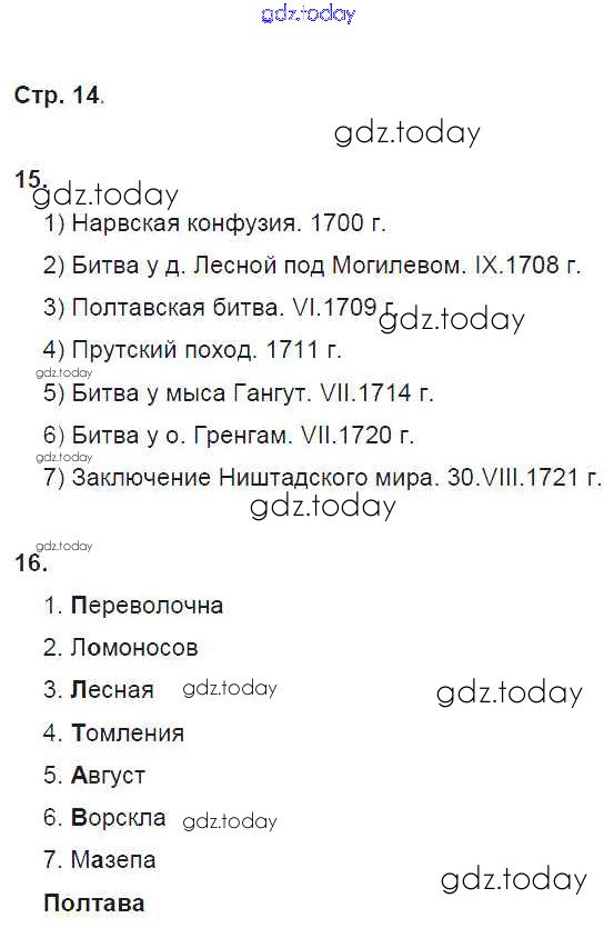 На страницах сайта gdz.today вы найдете учебный и вспомогательный материал, направленный на улучшения знаний школьной программы. ГДЗ - онлайн мир знаний Страницы (решение)  14 Рабочей тетради по Истории России для 8 класса Кочегаров  Русское слово Инновационная школа 2017