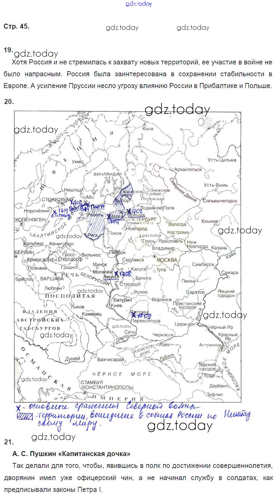 На страницах сайта gdz.today вы найдете учебный и вспомогательный материал, направленный на улучшения знаний школьной программы. ГДЗ - онлайн мир знаний Страницы (решение)  45 Рабочей тетради по Истории России для 8 класса Кочегаров  Русское слово Инновационная школа 2017