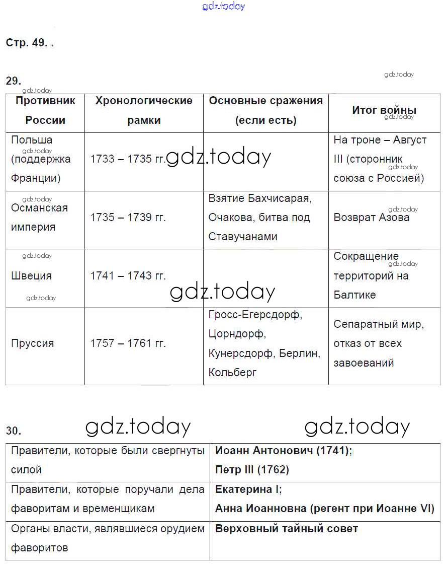 На страницах сайта gdz.today вы найдете учебный и вспомогательный материал, направленный на улучшения знаний школьной программы. ГДЗ - онлайн мир знаний Страницы (решение)  49 Рабочей тетради по Истории России для 8 класса Кочегаров  Русское слово Инновационная школа 2017