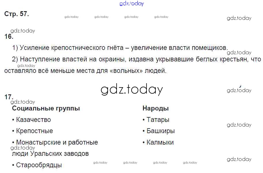 На страницах сайта gdz.today вы найдете учебный и вспомогательный материал, направленный на улучшения знаний школьной программы. ГДЗ - онлайн мир знаний Страницы (решение)  57 Рабочей тетради по Истории России для 8 класса Кочегаров  Русское слово Инновационная школа 2017