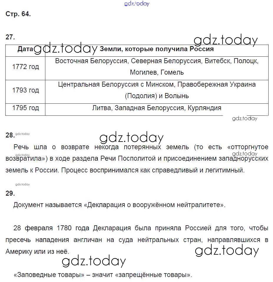 На страницах сайта gdz.today вы найдете учебный и вспомогательный материал, направленный на улучшения знаний школьной программы. ГДЗ - онлайн мир знаний Страницы (решение)  64 Рабочей тетради по Истории России для 8 класса Кочегаров  Русское слово Инновационная школа 2017