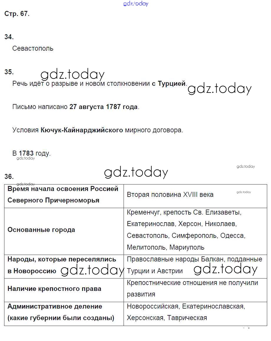 На страницах сайта gdz.today вы найдете учебный и вспомогательный материал, направленный на улучшения знаний школьной программы. ГДЗ - онлайн мир знаний Страницы (решение)  67 Рабочей тетради по Истории России для 8 класса Кочегаров  Русское слово Инновационная школа 2017