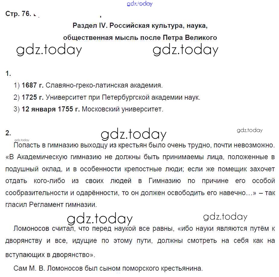 На страницах сайта gdz.today вы найдете учебный и вспомогательный материал, направленный на улучшения знаний школьной программы. ГДЗ - онлайн мир знаний Страницы (решение)  76 Рабочей тетради по Истории России для 8 класса Кочегаров  Русское слово Инновационная школа 2017