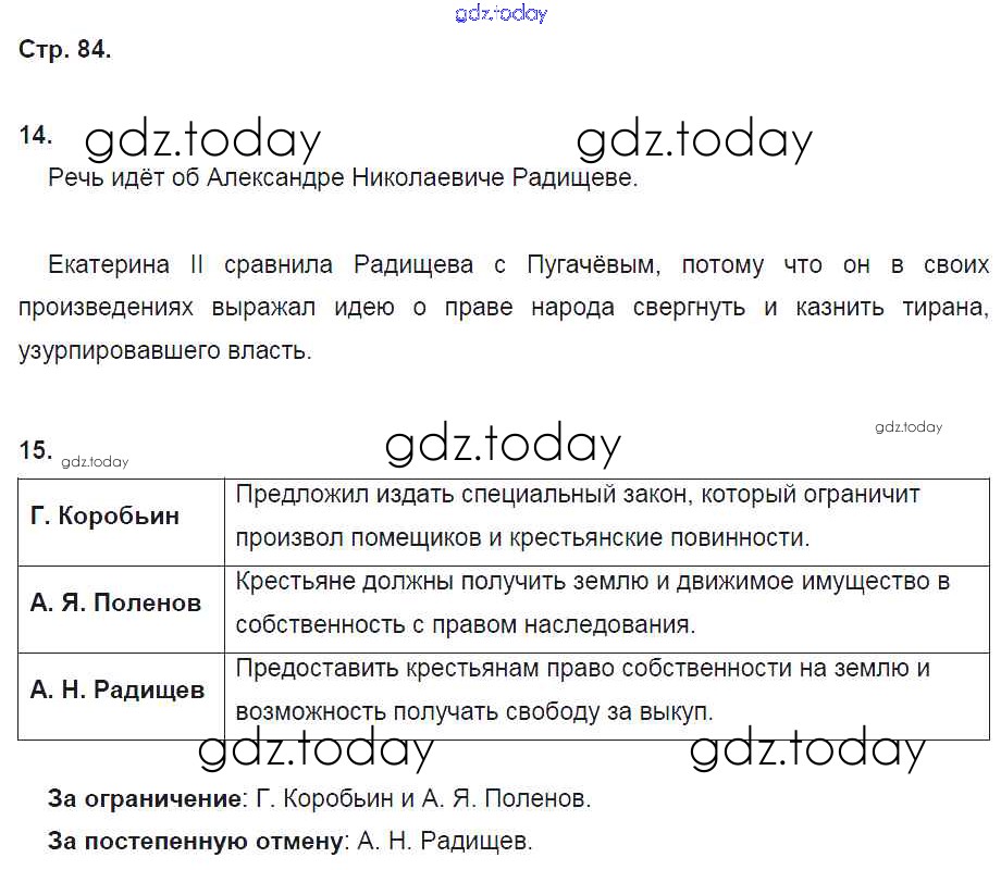 На страницах сайта gdz.today вы найдете учебный и вспомогательный материал, направленный на улучшения знаний школьной программы. ГДЗ - онлайн мир знаний Страницы (решение)  84 Рабочей тетради по Истории России для 8 класса Кочегаров  Русское слово Инновационная школа 2017