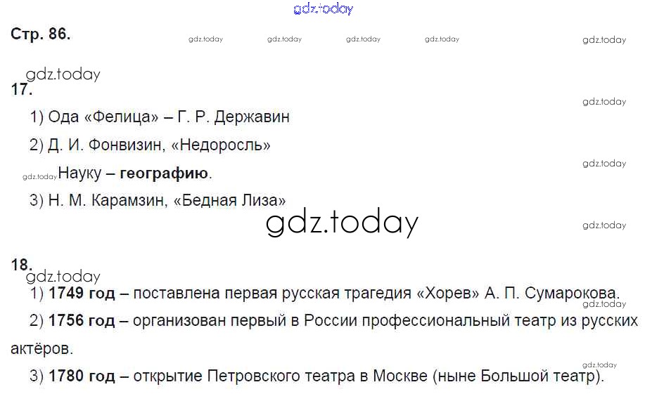 На страницах сайта gdz.today вы найдете учебный и вспомогательный материал, направленный на улучшения знаний школьной программы. ГДЗ - онлайн мир знаний Страницы (решение)  86 Рабочей тетради по Истории России для 8 класса Кочегаров  Русское слово Инновационная школа 2017