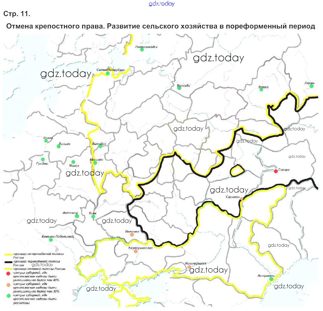 На страницах сайта gdz.today вы найдете учебный и вспомогательный материал, направленный на улучшения знаний школьной программы. ГДЗ - онлайн мир знаний Решение к контурным картам стр.11 Контурным картам по Истории России для 8 класса Колпаков, Пономарев Аст/Астрель 2017