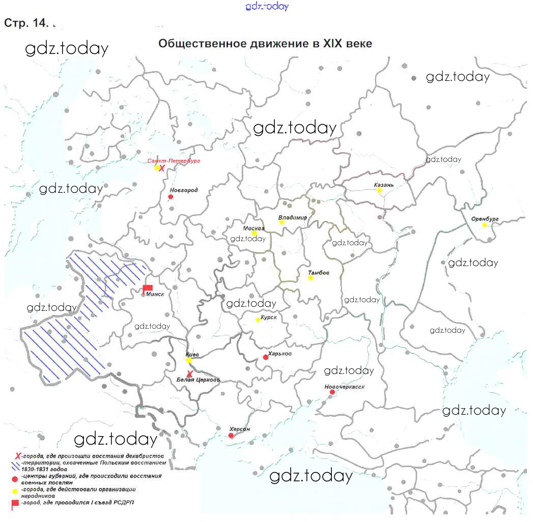 На страницах сайта gdz.today вы найдете учебный и вспомогательный материал, направленный на улучшения знаний школьной программы. ГДЗ - онлайн мир знаний Решение к контурным картам стр.14 Контурным картам по Истории России для 8 класса Колпаков, Пономарев Аст/Астрель 2017