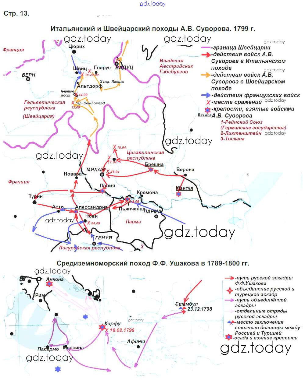 На страницах сайта gdz.today вы найдете учебный и вспомогательный материал, направленный на улучшения знаний школьной программы. ГДЗ - онлайн мир знаний Страницы (решение) 13 Контурным картам по Истории России для 8 класса Приваловский Дрофа УМК 2020