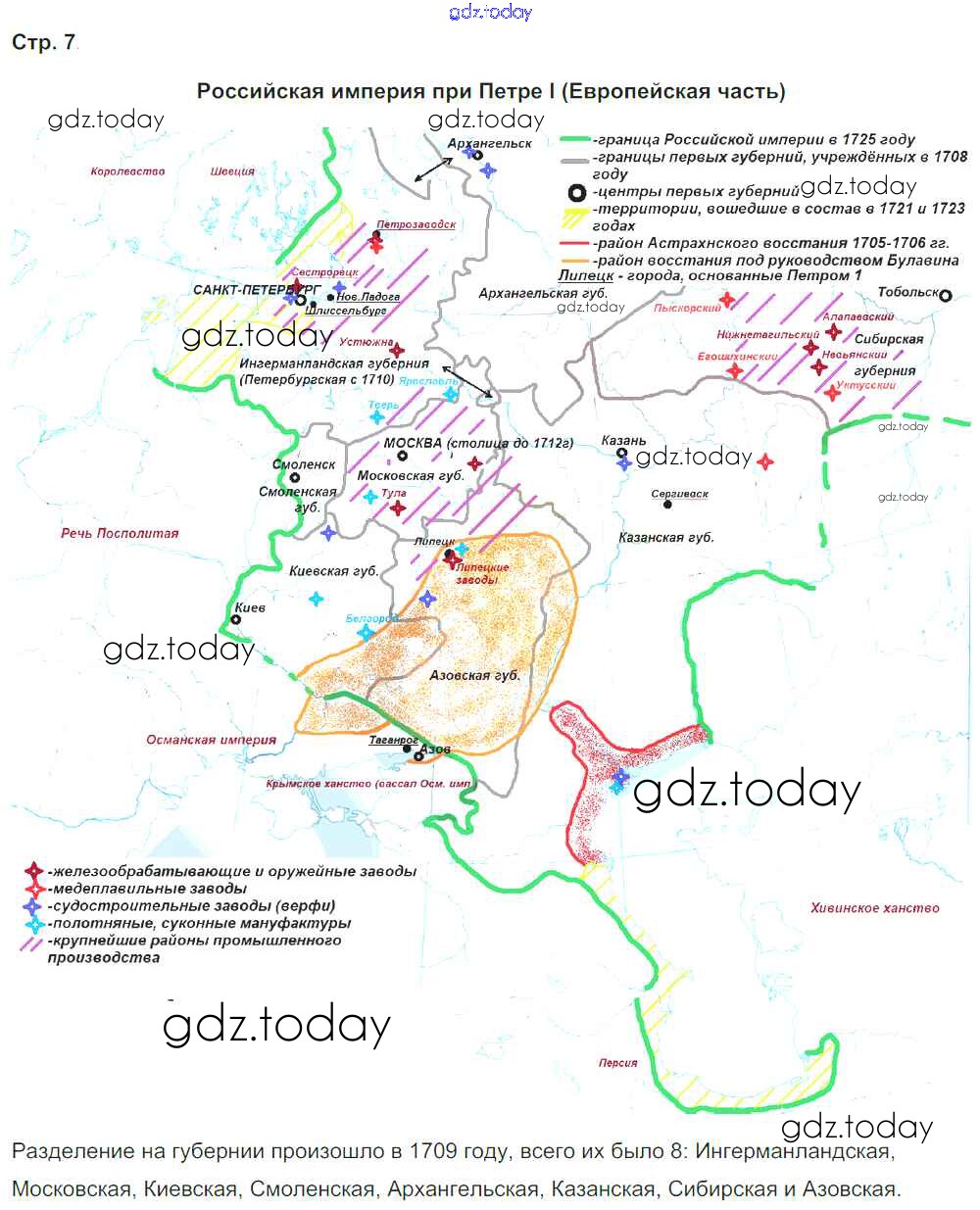 На страницах сайта gdz.today вы найдете учебный и вспомогательный материал, направленный на улучшения знаний школьной программы. ГДЗ - онлайн мир знаний Страницы (решение) 7 Контурным картам по Истории России для 8 класса Приваловский Дрофа УМК 2020