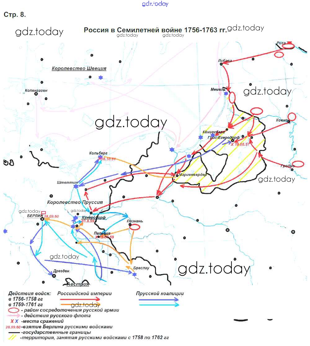 Ответы к Страницы (решение) 8 Контурным картам по Истории России для 8 класса Приваловский Дрофа УМК 2020