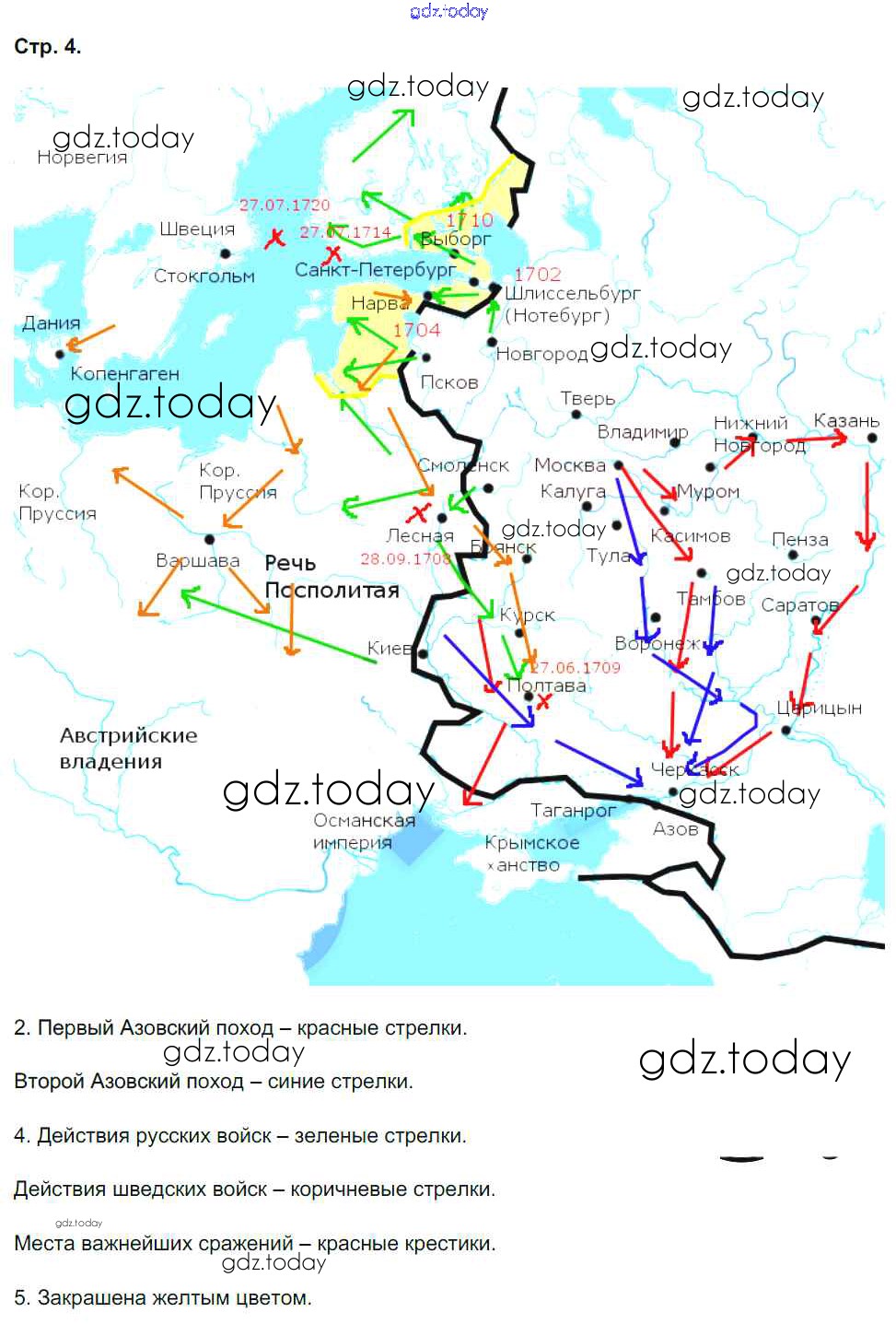 На страницах сайта gdz.today вы найдете учебный и вспомогательный материал, направленный на улучшения знаний школьной программы. ГДЗ - онлайн мир знаний Страницы (решение) 4 Контурным картам по Истории России для 8 класса Павлова Экзамен 2019