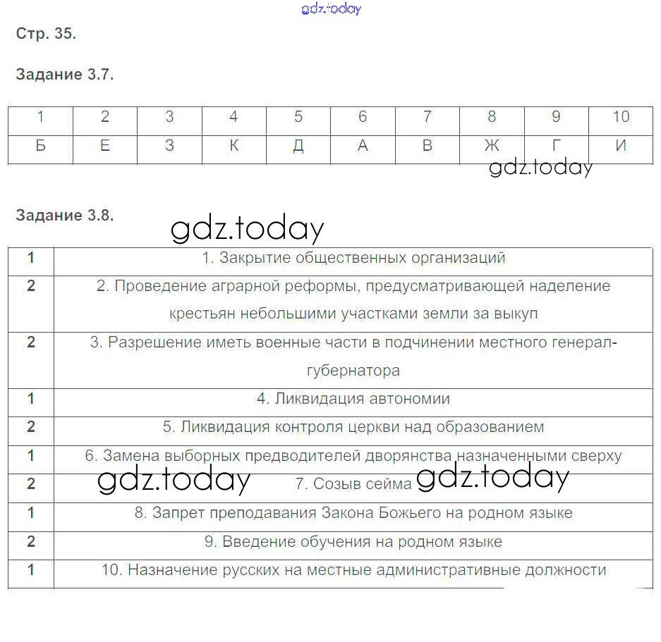 На страницах сайта gdz.today вы найдете учебный и вспомогательный материал, направленный на улучшения знаний школьной программы. ГДЗ - онлайн мир знаний Страницы (решение) 35 Рабочей тетради с контурными картами по Истории России для 8 класса Симонова Экзамен УМК 2018