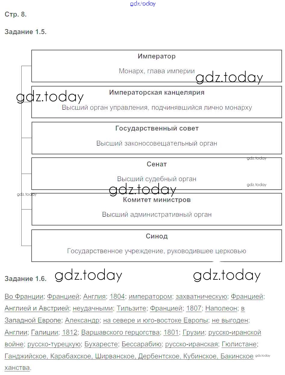 На страницах сайта gdz.today вы найдете учебный и вспомогательный материал, направленный на улучшения знаний школьной программы. ГДЗ - онлайн мир знаний Страницы (решение) 8 Рабочей тетради с контурными картами по Истории России для 8 класса Симонова Экзамен УМК 2018