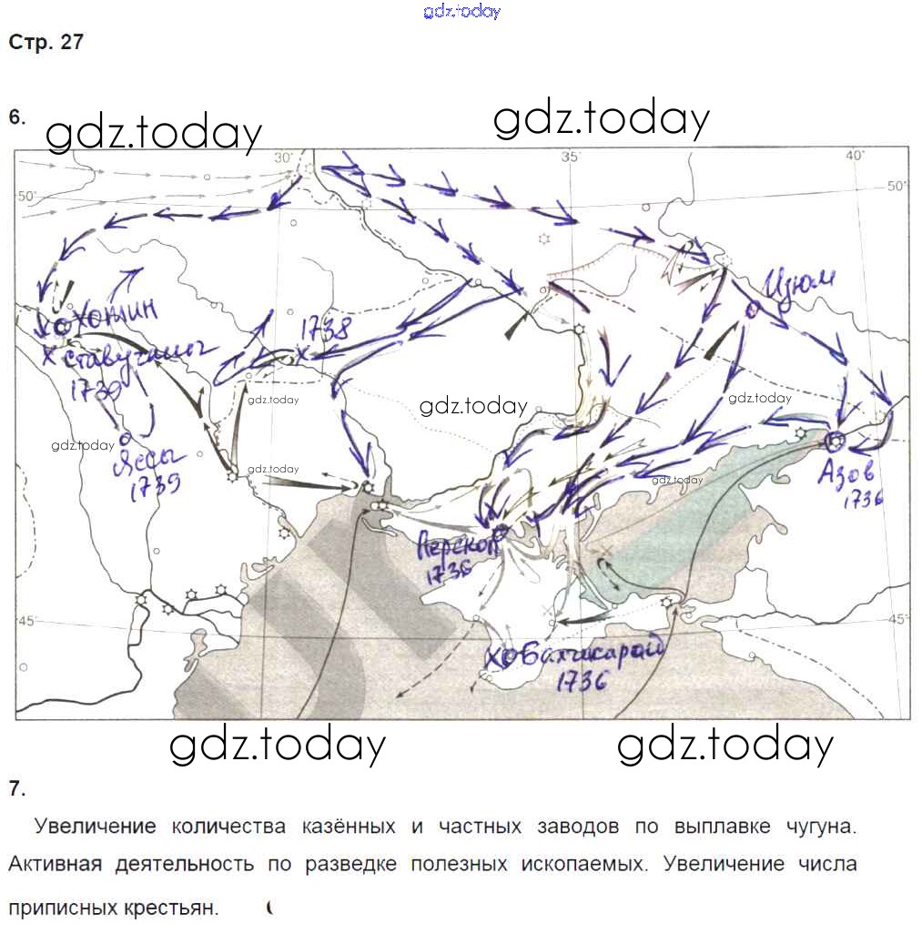 На страницах сайта gdz.today вы найдете учебный и вспомогательный материал, направленный на улучшения знаний школьной программы. ГДЗ - онлайн мир знаний Страницы (решение) 27 Рабочей тетради по Истории России для 8 класса Симонова, Клоков Дрофа УМК 2019