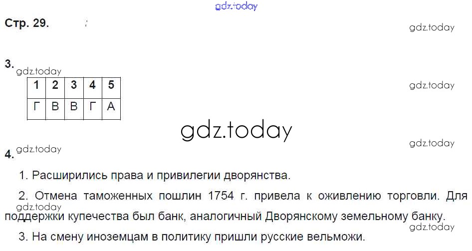 На страницах сайта gdz.today вы найдете учебный и вспомогательный материал, направленный на улучшения знаний школьной программы. ГДЗ - онлайн мир знаний Страницы (решение) 29 Рабочей тетради по Истории России для 8 класса Симонова, Клоков Дрофа УМК 2019