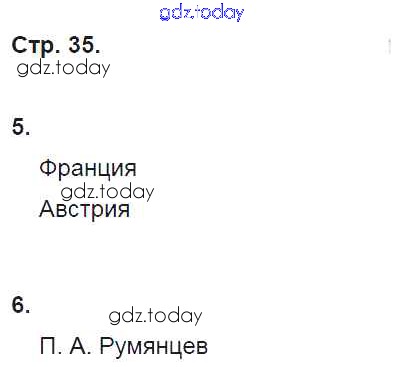 На страницах сайта gdz.today вы найдете учебный и вспомогательный материал, направленный на улучшения знаний школьной программы. ГДЗ - онлайн мир знаний Страницы (решение) 35 Рабочей тетради по Истории России для 8 класса Симонова, Клоков Дрофа УМК 2019