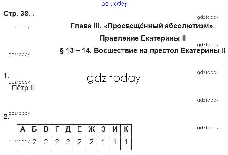 На страницах сайта gdz.today вы найдете учебный и вспомогательный материал, направленный на улучшения знаний школьной программы. ГДЗ - онлайн мир знаний Страницы (решение) 38 Рабочей тетради по Истории России для 8 класса Симонова, Клоков Дрофа УМК 2019