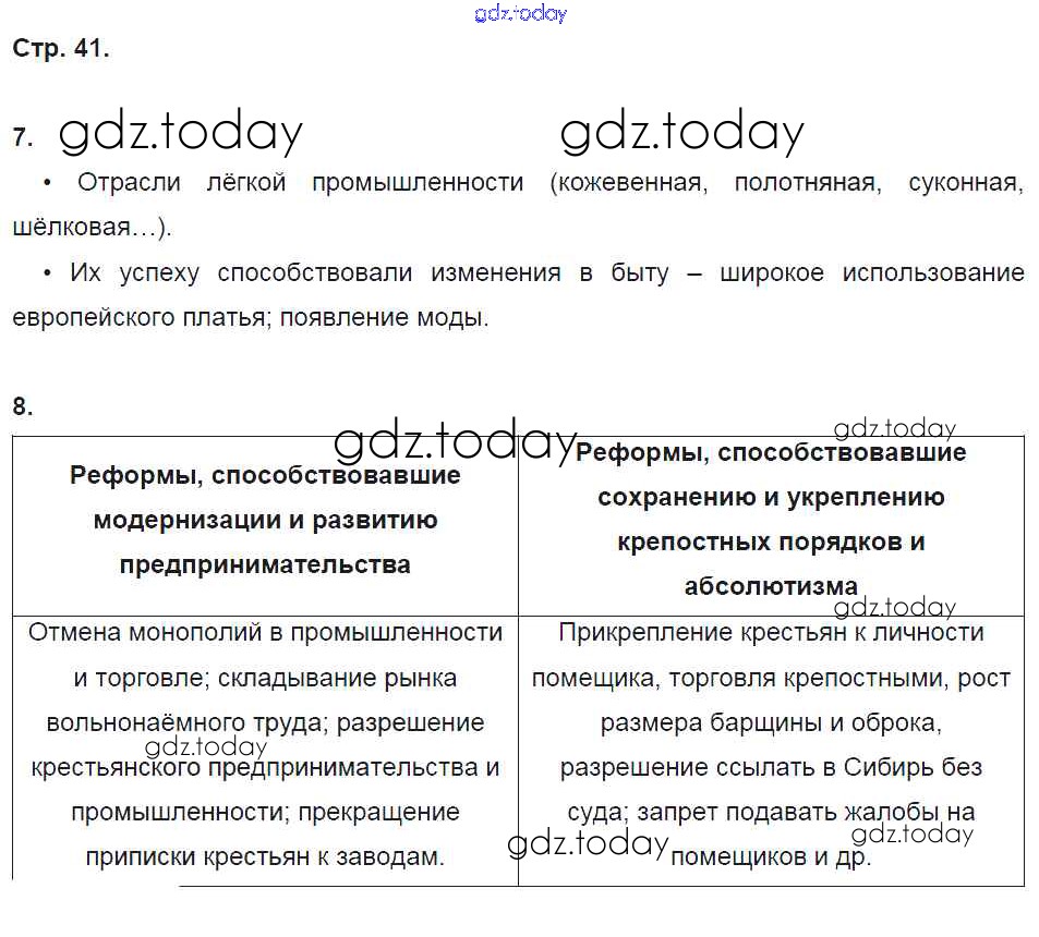 На страницах сайта gdz.today вы найдете учебный и вспомогательный материал, направленный на улучшения знаний школьной программы. ГДЗ - онлайн мир знаний Страницы (решение) 41 Рабочей тетради по Истории России для 8 класса Симонова, Клоков Дрофа УМК 2019