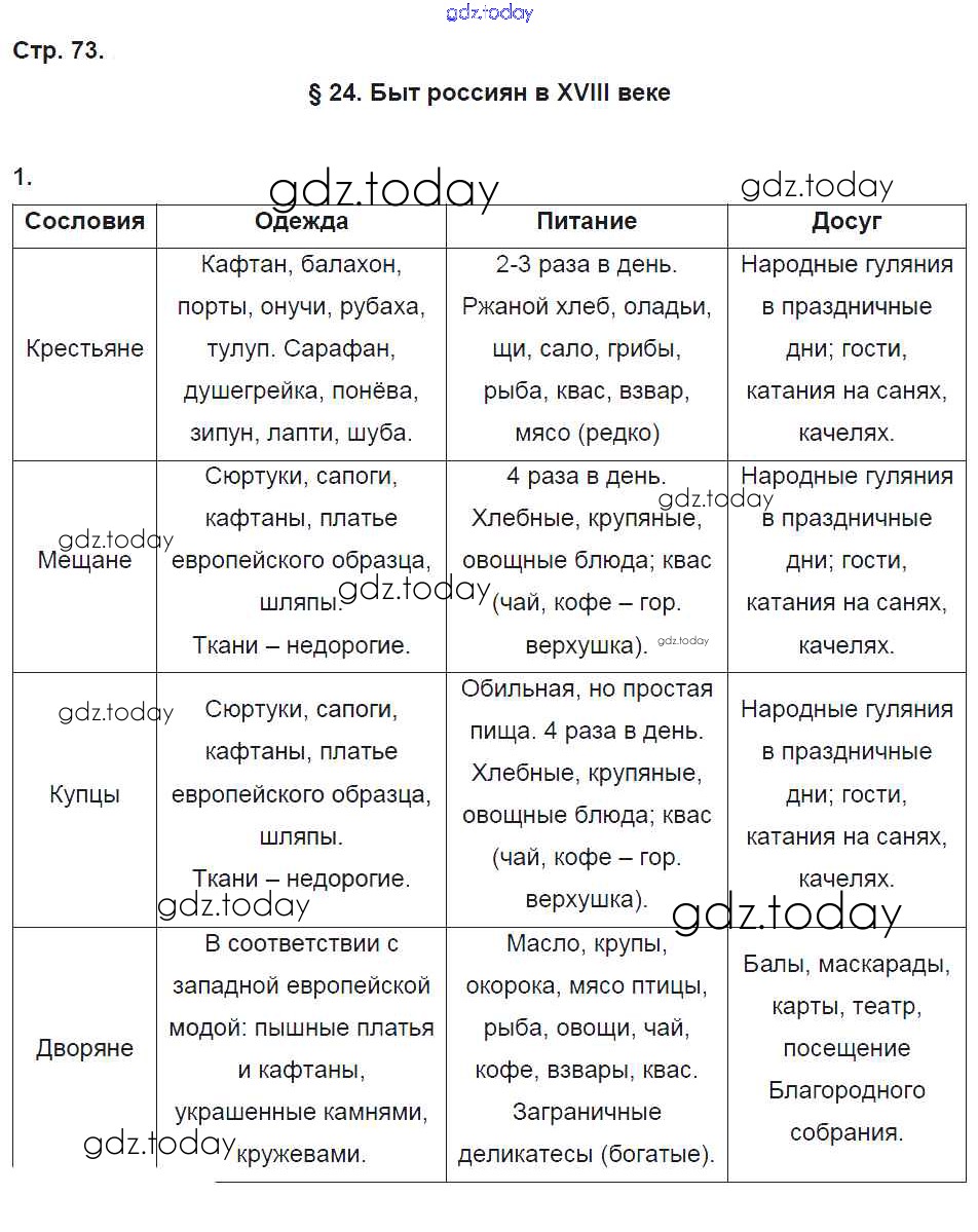 На страницах сайта gdz.today вы найдете учебный и вспомогательный материал, направленный на улучшения знаний школьной программы. ГДЗ - онлайн мир знаний Страницы (решение) 73 Рабочей тетради по Истории России для 8 класса Симонова, Клоков Дрофа УМК 2019