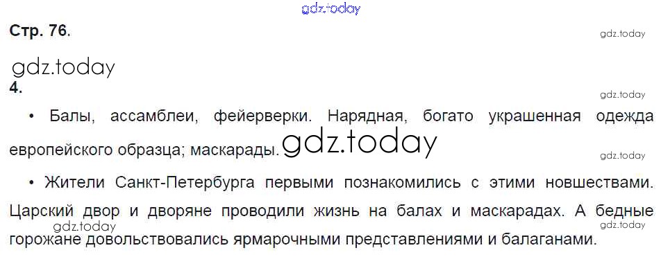 На страницах сайта gdz.today вы найдете учебный и вспомогательный материал, направленный на улучшения знаний школьной программы. ГДЗ - онлайн мир знаний Страницы (решение) 76 Рабочей тетради по Истории России для 8 класса Симонова, Клоков Дрофа УМК 2019