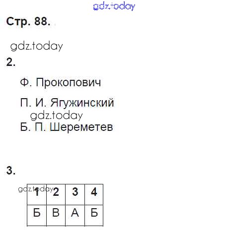 На страницах сайта gdz.today вы найдете учебный и вспомогательный материал, направленный на улучшения знаний школьной программы. ГДЗ - онлайн мир знаний Страницы (решение) 88 Рабочей тетради по Истории России для 8 класса Симонова, Клоков Дрофа УМК 2019