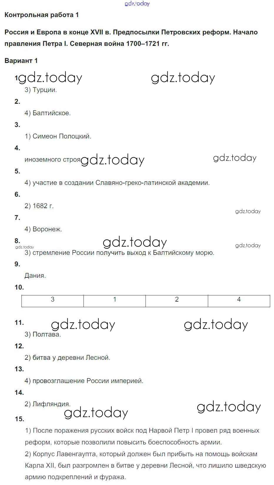 На страницах сайта gdz.today вы найдете учебный и вспомогательный материал, направленный на улучшения знаний школьной программы. ГДЗ - онлайн мир знаний Решение к контрольной работе 1. Варианты 1 Контрольным работам по Истории России для 8 класса Соловьев Экзамен УМК 2019