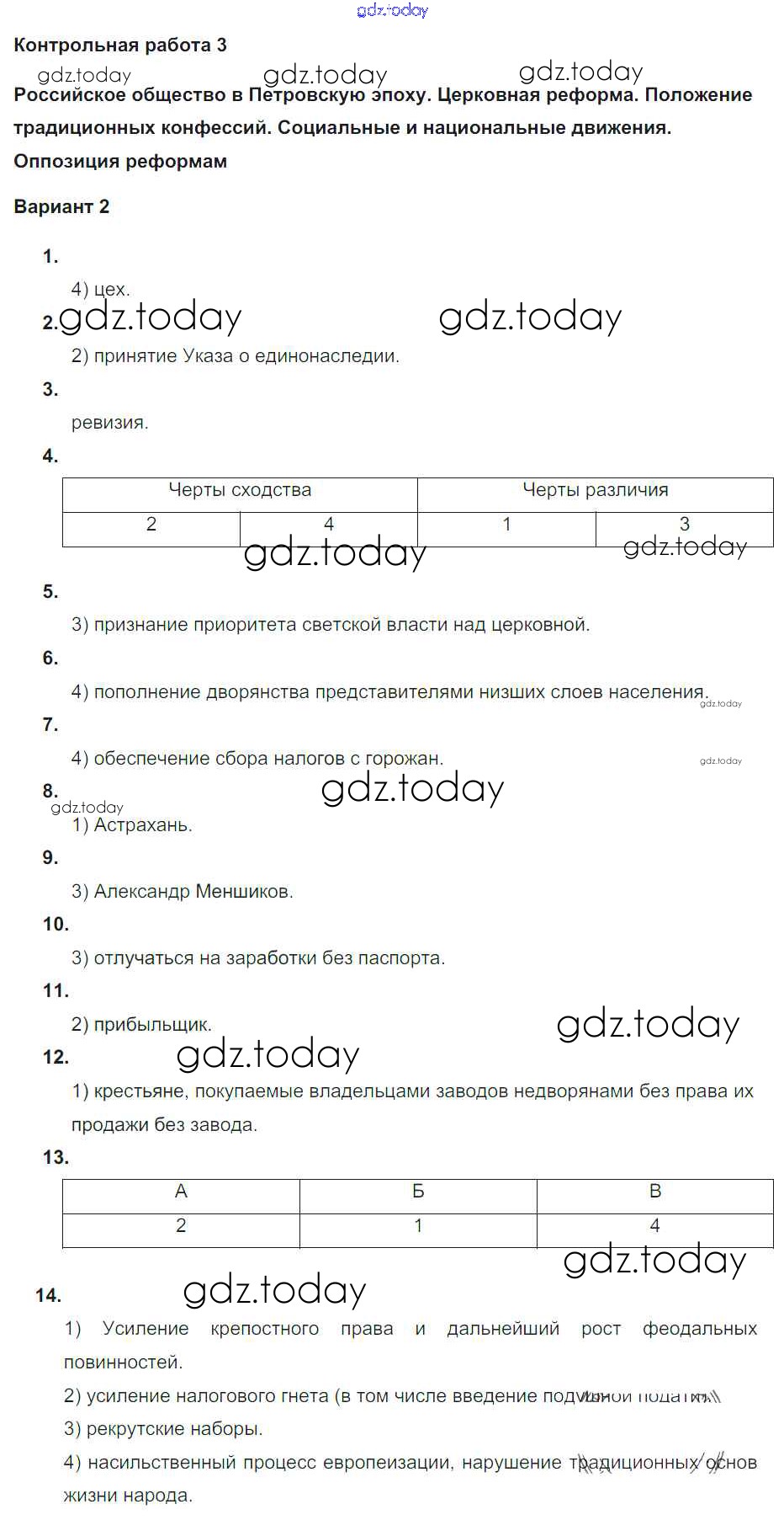 На страницах сайта gdz.today вы найдете учебный и вспомогательный материал, направленный на улучшения знаний школьной программы. ГДЗ - онлайн мир знаний Решение к контрольной работе 3. Варианты 2 Контрольным работам по Истории России для 8 класса Соловьев Экзамен УМК 2019