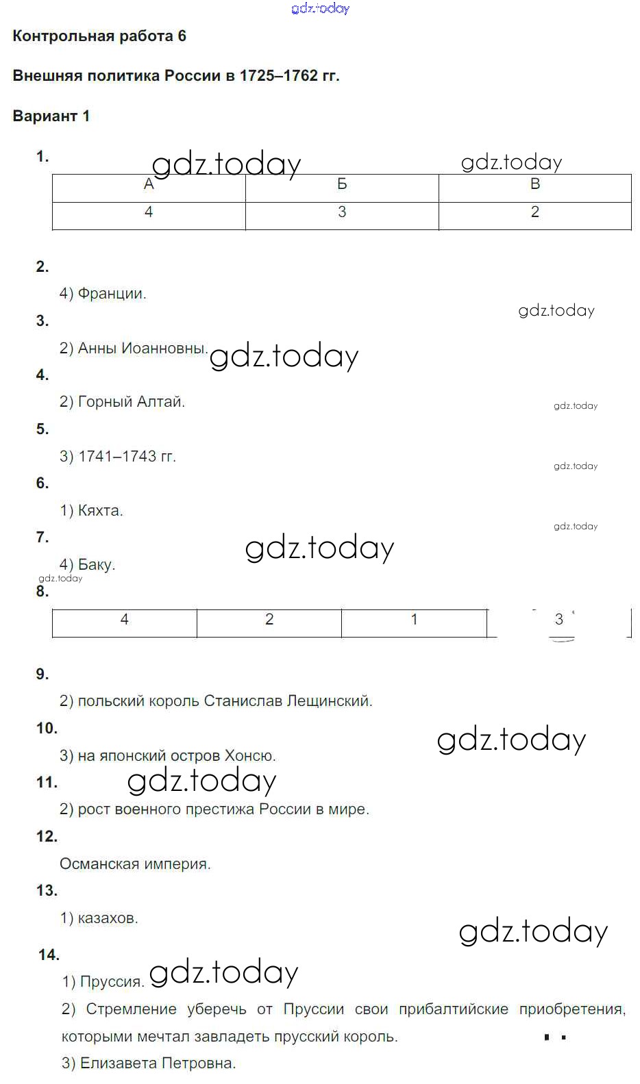 На страницах сайта gdz.today вы найдете учебный и вспомогательный материал, направленный на улучшения знаний школьной программы. ГДЗ - онлайн мир знаний Решение к контрольной работе 6. Варианты 1 Контрольным работам по Истории России для 8 класса Соловьев Экзамен УМК 2019