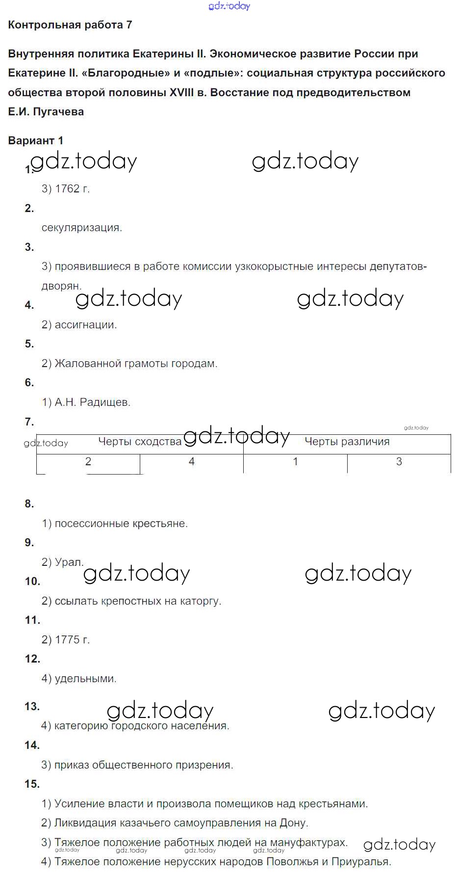 На страницах сайта gdz.today вы найдете учебный и вспомогательный материал, направленный на улучшения знаний школьной программы. ГДЗ - онлайн мир знаний Решение к контрольной работе 7. Варианты 1 Контрольным работам по Истории России для 8 класса Соловьев Экзамен УМК 2019