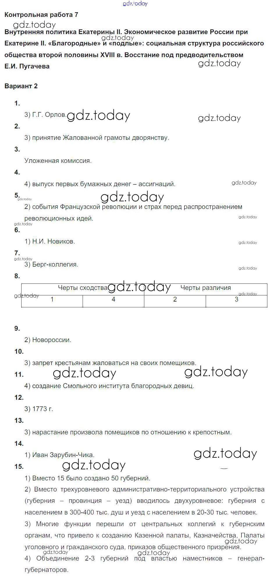 На страницах сайта gdz.today вы найдете учебный и вспомогательный материал, направленный на улучшения знаний школьной программы. ГДЗ - онлайн мир знаний Решение к контрольной работе 7. Варианты 2 Контрольным работам по Истории России для 8 класса Соловьев Экзамен УМК 2019