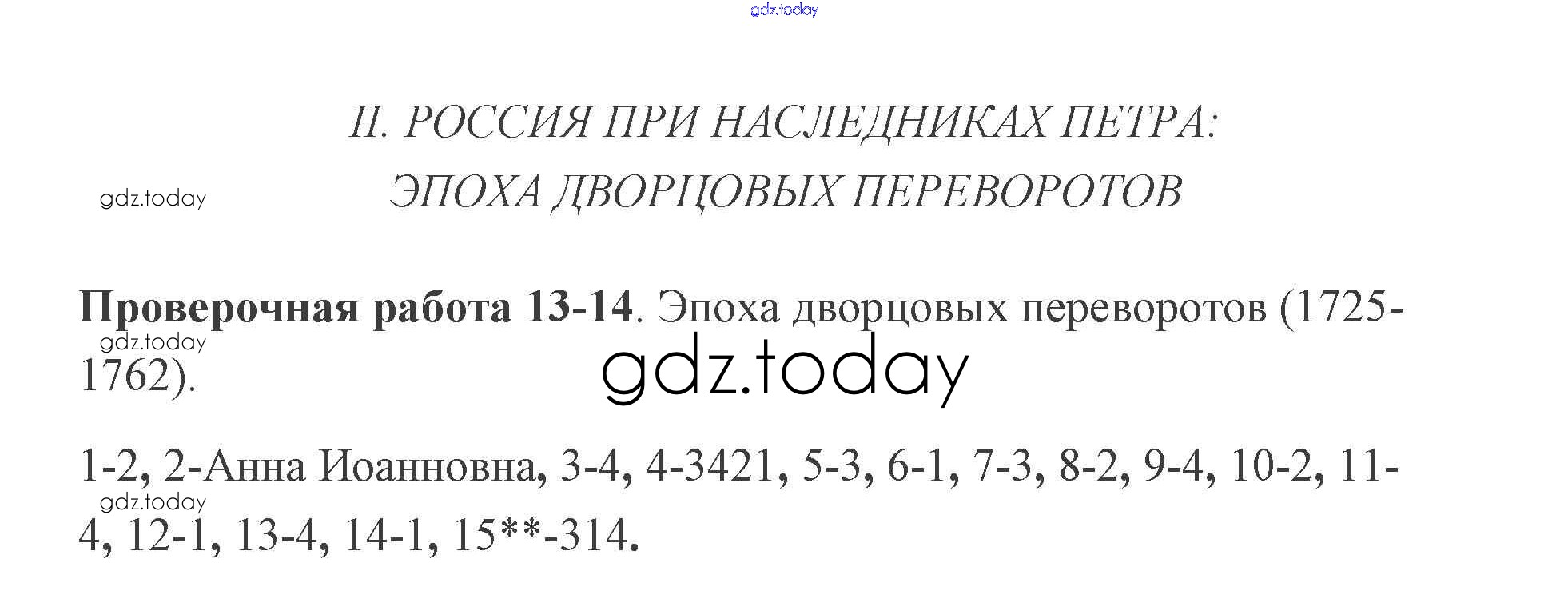 На страницах сайта gdz.today вы найдете учебный и вспомогательный материал, направленный на улучшения знаний школьной программы. ГДЗ - онлайн мир знаний Решение к проверочным работам 13-14 Проверочным работам по Истории России для 8 класса Соловьев Экзамен УМК 2019
