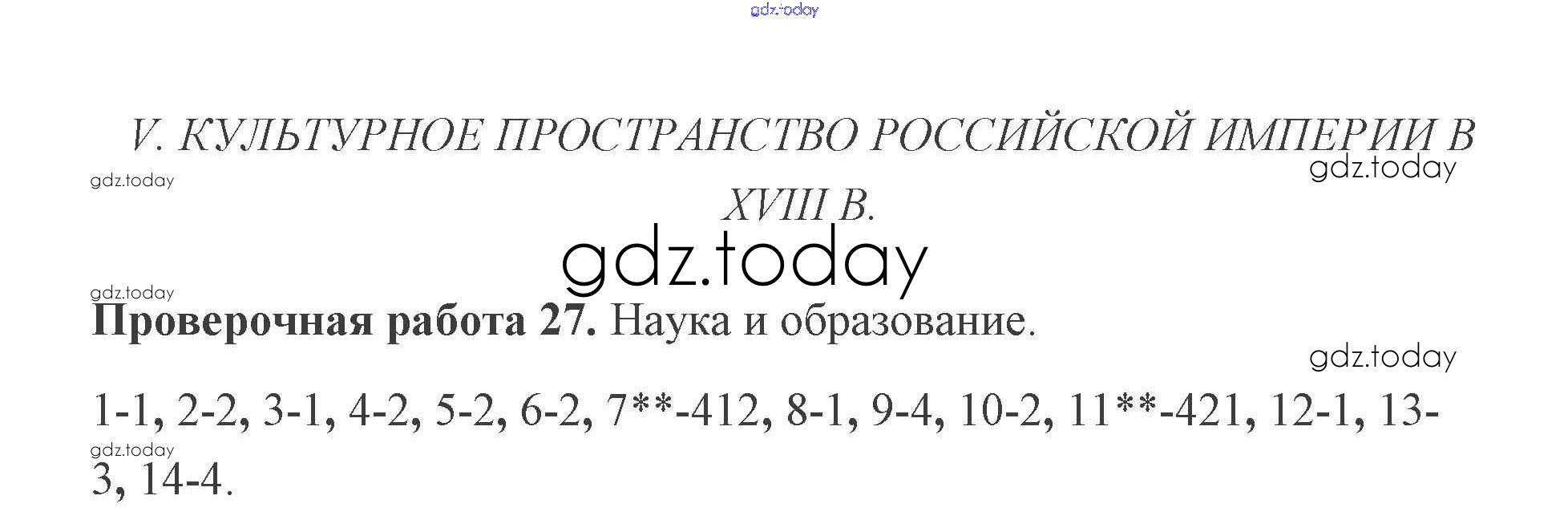 На страницах сайта gdz.today вы найдете учебный и вспомогательный материал, направленный на улучшения знаний школьной программы. ГДЗ - онлайн мир знаний Решение к проверочным работам 27 Проверочным работам по Истории России для 8 класса Соловьев Экзамен УМК 2019