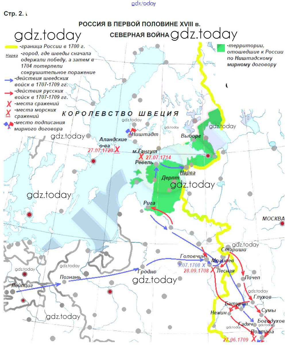 На страницах сайта gdz.today вы найдете учебный и вспомогательный материал, направленный на улучшения знаний школьной программы. ГДЗ - онлайн мир знаний Страницы (решение) 2 Контурным картам по Истории России для 8 класса Тороп Просвещение УМК 2017