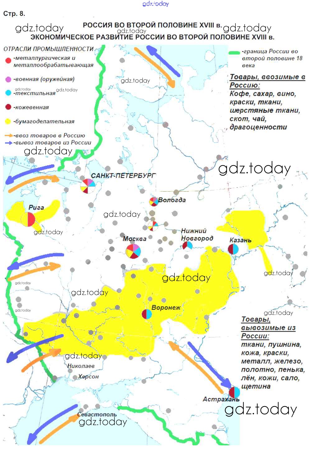 На страницах сайта gdz.today вы найдете учебный и вспомогательный материал, направленный на улучшения знаний школьной программы. ГДЗ - онлайн мир знаний Страницы (решение) 8 Контурным картам по Истории России для 8 класса Тороп Просвещение УМК 2017