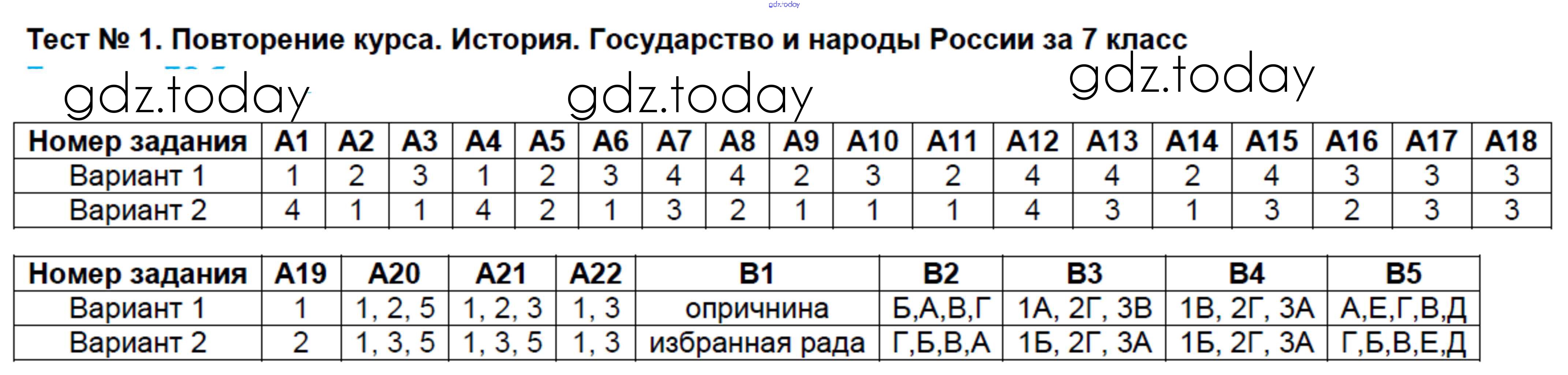 На страницах сайта gdz.today вы найдете учебный и вспомогательный материал, направленный на улучшения знаний школьной программы. ГДЗ - онлайн мир знаний Решение к тестам 1 Контрольно-измерительным материалам (КИМ) по Истории России для 8 класса Волкова ВАКО 2017