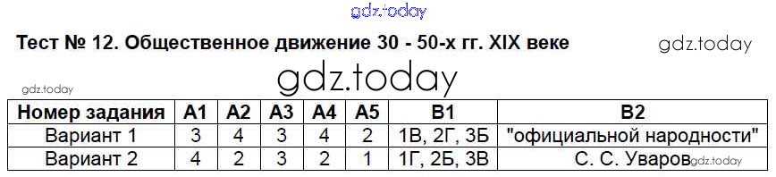 На страницах сайта gdz.today вы найдете учебный и вспомогательный материал, направленный на улучшения знаний школьной программы. ГДЗ - онлайн мир знаний Решение к тестам 12 Контрольно-измерительным материалам (КИМ) по Истории России для 8 класса Волкова ВАКО 2017