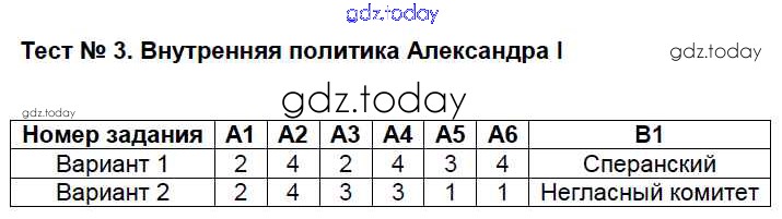 На страницах сайта gdz.today вы найдете учебный и вспомогательный материал, направленный на улучшения знаний школьной программы. ГДЗ - онлайн мир знаний Решение к тестам 3 Контрольно-измерительным материалам (КИМ) по Истории России для 8 класса Волкова ВАКО 2017