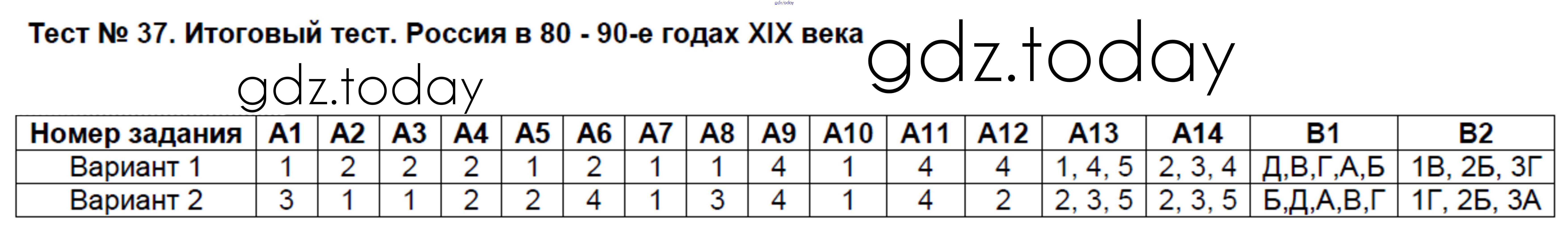 На страницах сайта gdz.today вы найдете учебный и вспомогательный материал, направленный на улучшения знаний школьной программы. ГДЗ - онлайн мир знаний Решение к тестам 37 Контрольно-измерительным материалам (КИМ) по Истории России для 8 класса Волкова ВАКО 2017