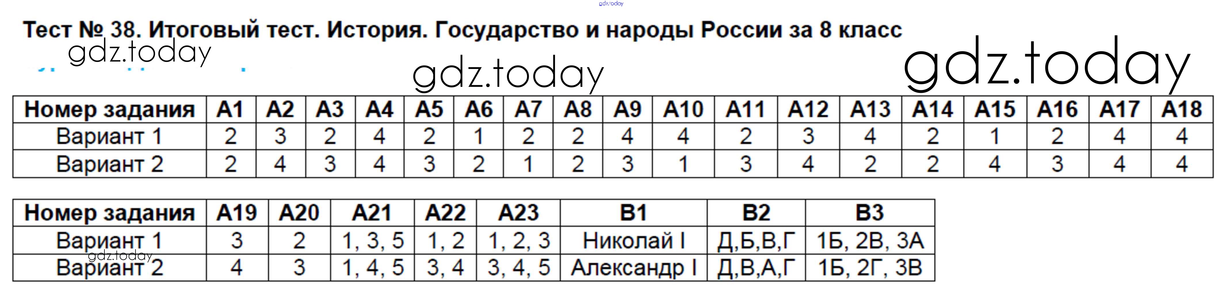 На страницах сайта gdz.today вы найдете учебный и вспомогательный материал, направленный на улучшения знаний школьной программы. ГДЗ - онлайн мир знаний Решение к тестам 38 Контрольно-измерительным материалам (КИМ) по Истории России для 8 класса Волкова ВАКО 2017
