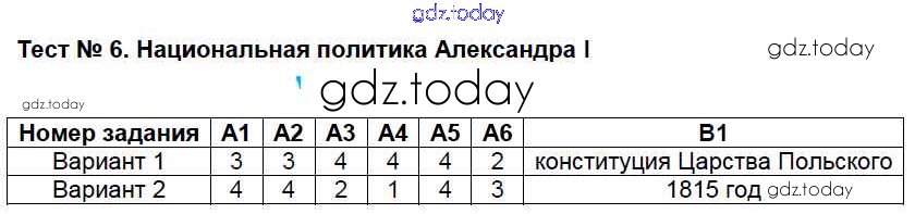 На страницах сайта gdz.today вы найдете учебный и вспомогательный материал, направленный на улучшения знаний школьной программы. ГДЗ - онлайн мир знаний Решение к тестам 6 Контрольно-измерительным материалам (КИМ) по Истории России для 8 класса Волкова ВАКО 2017