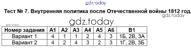 На страницах сайта gdz.today вы найдете учебный и вспомогательный материал, направленный на улучшения знаний школьной программы. ГДЗ - онлайн мир знаний Решение к тестам 7 Контрольно-измерительным материалам (КИМ) по Истории России для 8 класса Волкова ВАКО 2017
