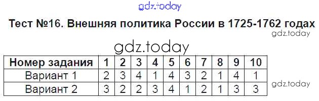 На страницах сайта gdz.today вы найдете учебный и вспомогательный материал, направленный на улучшения знаний школьной программы. ГДЗ - онлайн мир знаний Решение к тестам 16 Тестам по Истории России для 8 класса Воробьёва Экзамен УМК 2017