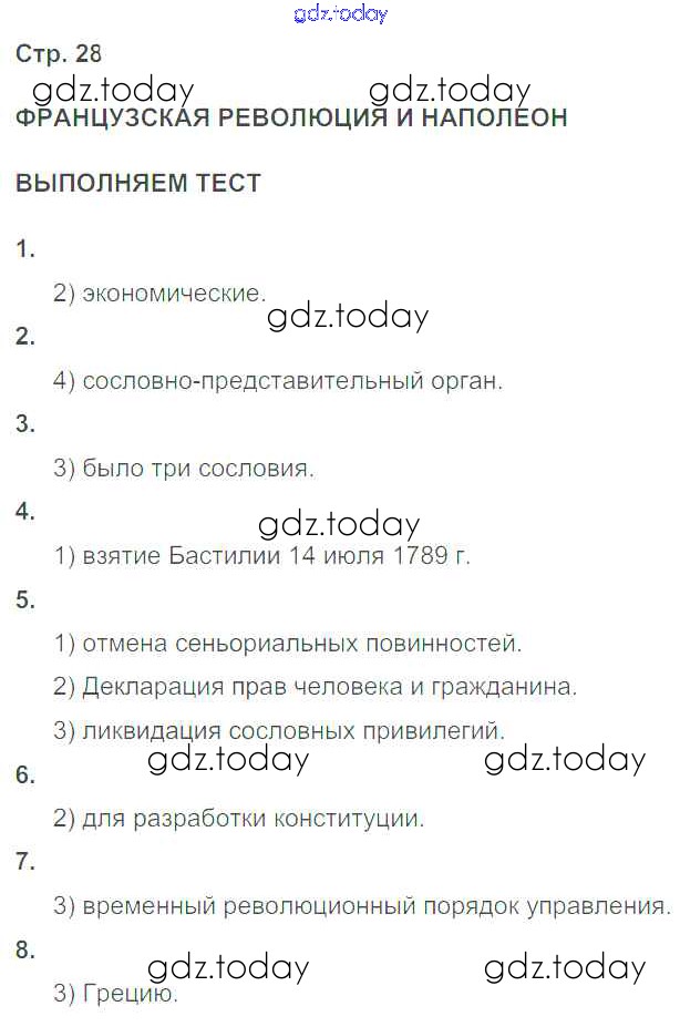 На страницах сайта gdz.today вы найдете учебный и вспомогательный материал, направленный на улучшения знаний школьной программы. ГДЗ - онлайн мир знаний Страницы (решение) 28 Тетради-тренажеру по Истории для 8 класса Лазарева Просвещение Сферы 2017