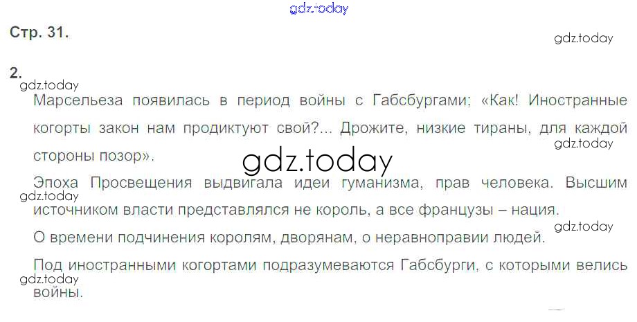 На страницах сайта gdz.today вы найдете учебный и вспомогательный материал, направленный на улучшения знаний школьной программы. ГДЗ - онлайн мир знаний Страницы (решение) 31 Тетради-тренажеру по Истории для 8 класса Лазарева Просвещение Сферы 2017