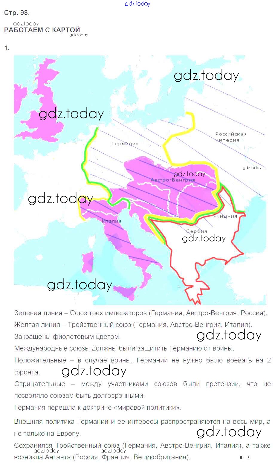 На страницах сайта gdz.today вы найдете учебный и вспомогательный материал, направленный на улучшения знаний школьной программы. ГДЗ - онлайн мир знаний Страницы (решение) 98 Тетради-тренажеру по Истории для 8 класса Лазарева Просвещение Сферы 2017