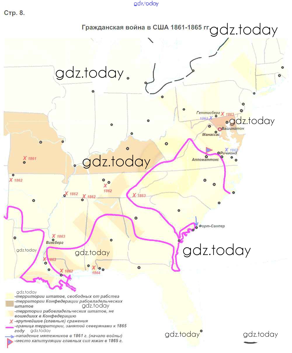 На страницах сайта gdz.today вы найдете учебный и вспомогательный материал, направленный на улучшения знаний школьной программы. ГДЗ - онлайн мир знаний Страницы (решение) 8 Контурным картам по Истории для 8 класса Приваловский Дрофа УМК 2019