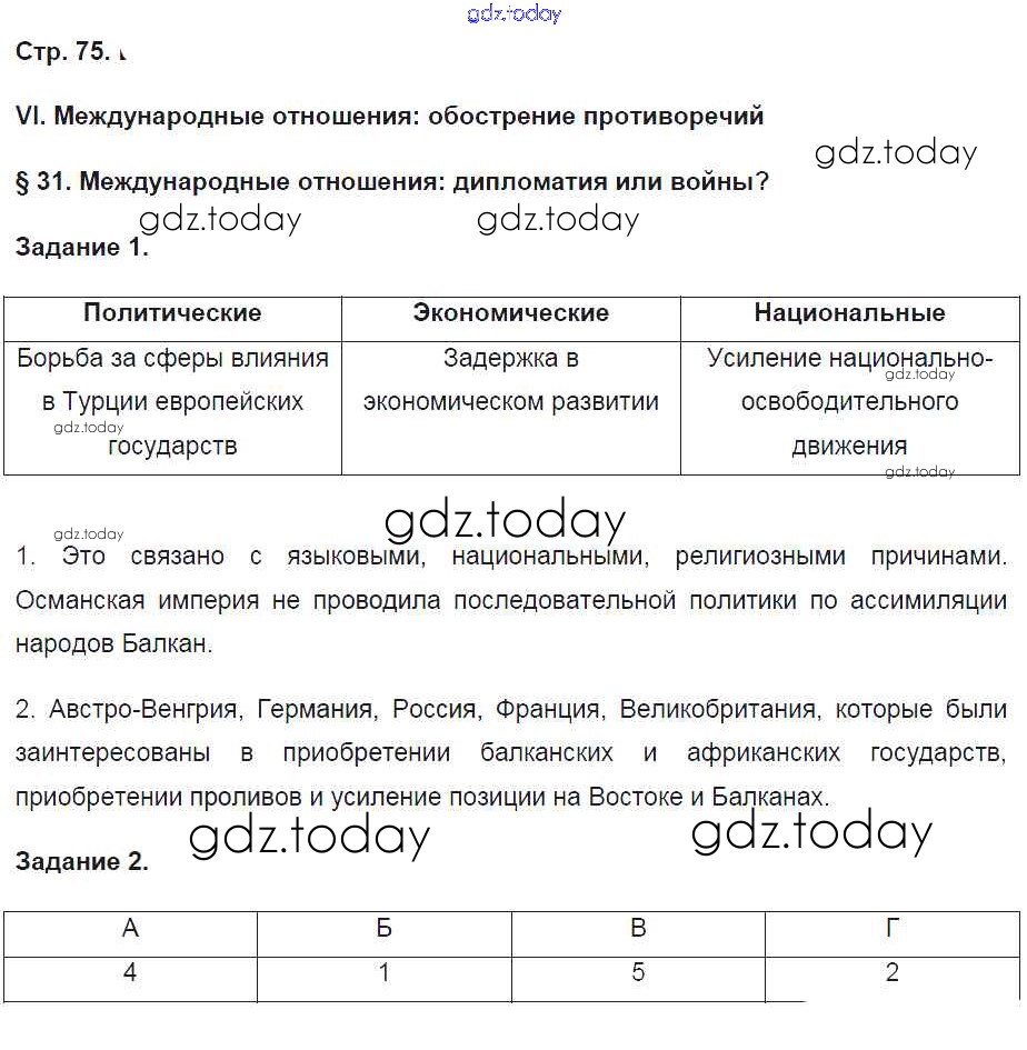 На страницах сайта gdz.today вы найдете учебный и вспомогательный материал, направленный на улучшения знаний школьной программы. ГДЗ - онлайн мир знаний Решение к части 2. Страницы 75 Рабочей тетради по Истории для 8 класса Румянцев Экзамен УМК 2018