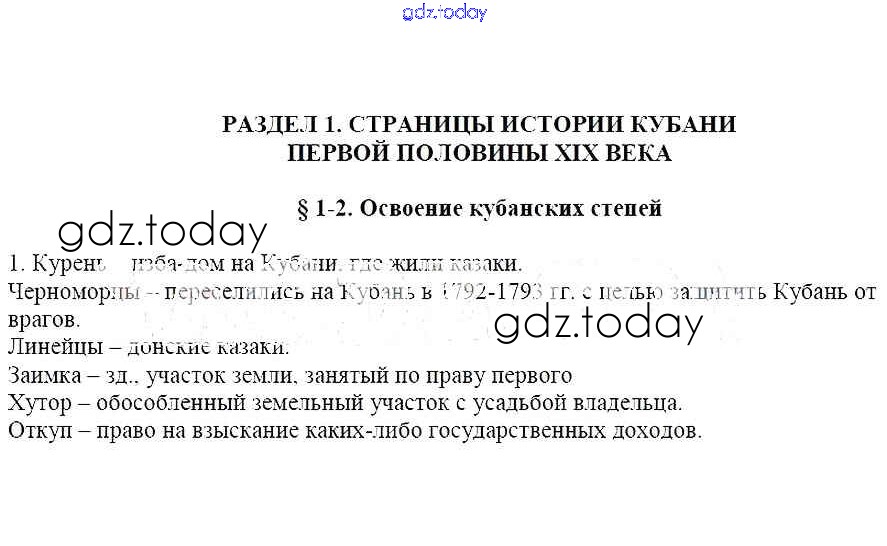 Решение к § 1-2. Освоение кубанских степей